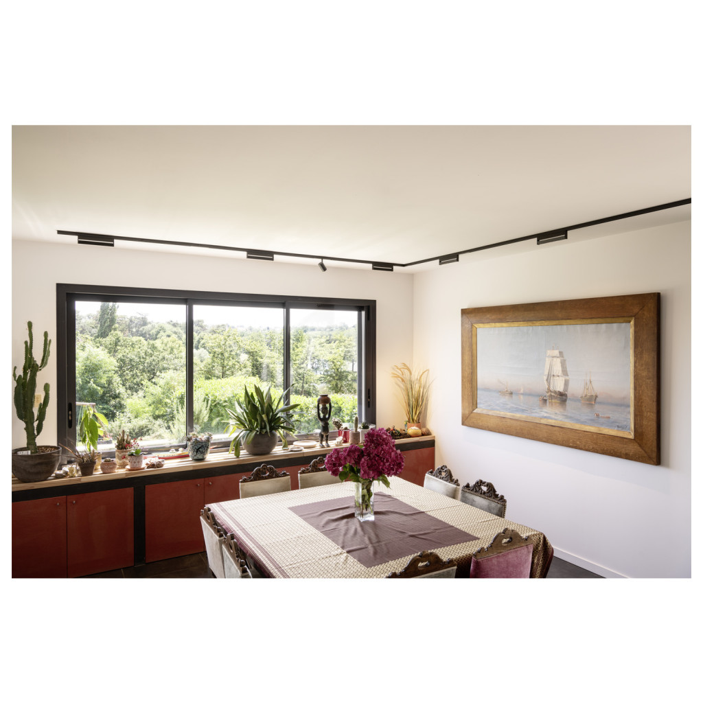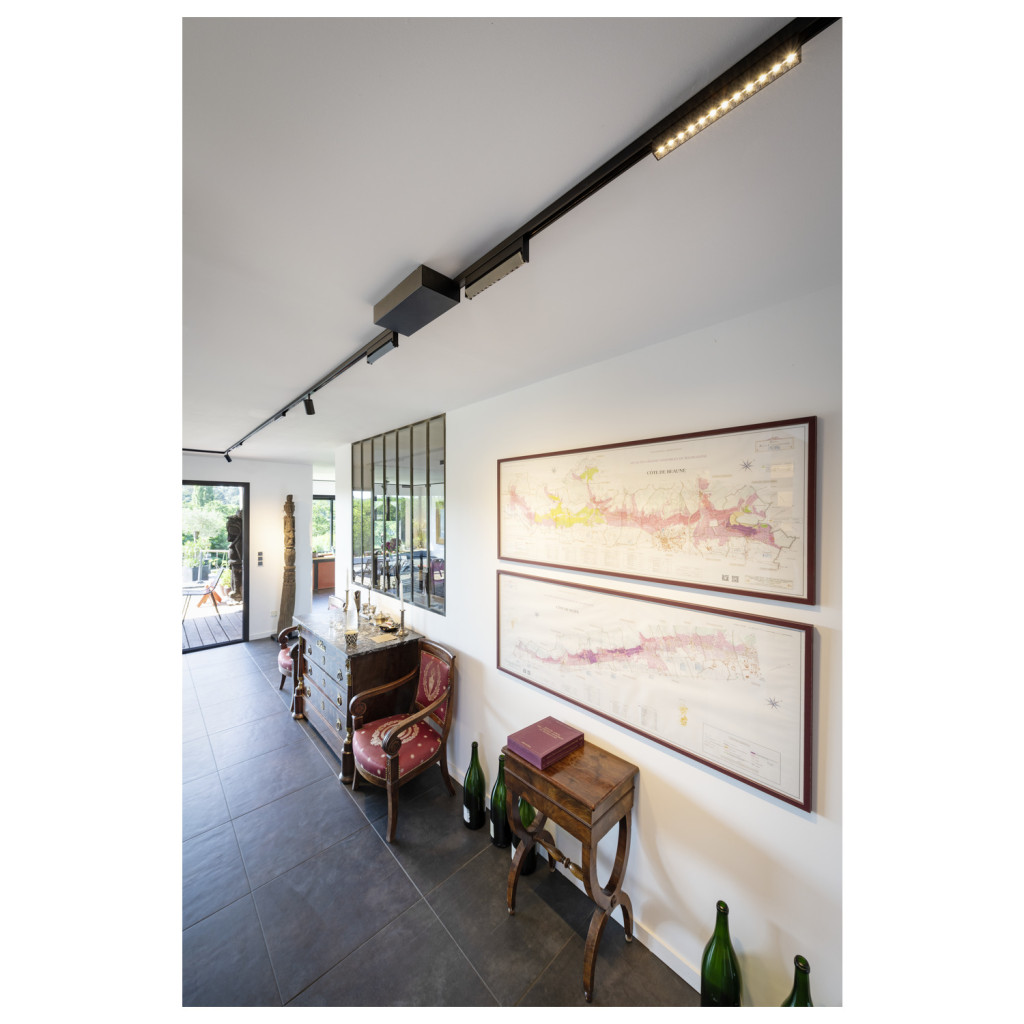 48V SYSTEM IN-LINE 24 fekete 7.3W 610lm 3000K CRI90 35° darklight billenthető led reflektor 48V-os alacsony feszültségű sínhez