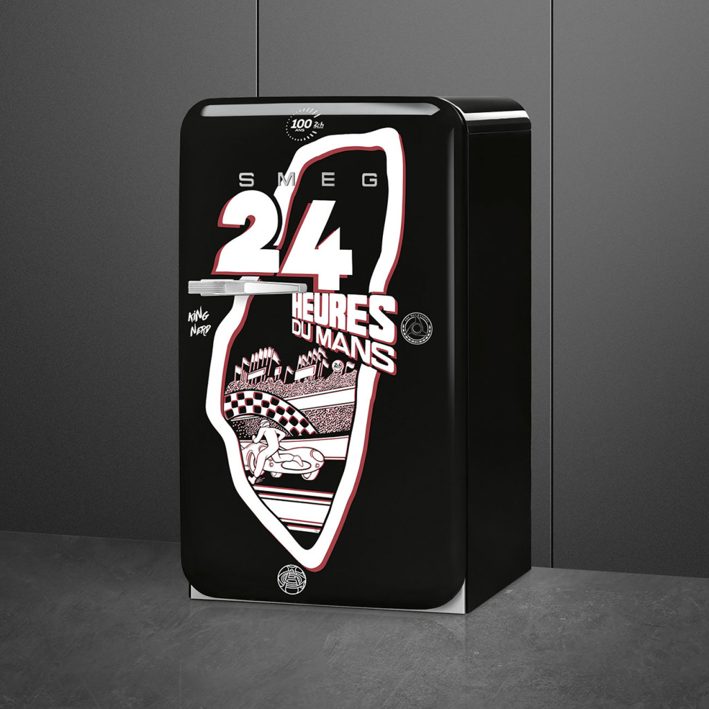 Le Mans 24 órás autóverseny tiszteletére készült retro hűtőszekrény minta, ami nem csak jól néz ki, de magas teljesítményű technológiával is rendelkezik. A 50-es évek stílusában megalkotott Smeg kombinált hűtő és fagyasztó 122 literes űrtartalommal rendelkezik, így bőven elfér benne minden, amire szükséged van. A jobb oldali pántokkal ellátott hűtőszekrény 54,6 cm széles és 98 cm magas, így könnyen beilleszthető bármely konyhába. A különleges Le Mans minta pedig garantáltan mosolyt csal majd az arcodra minden alkalommal, amikor kinyitod a hűtő ajtaját.