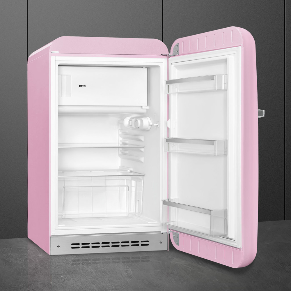 Szereted a retró stílust és a rózsaszínt? Akkor a Smeg 50'S STYLE FAB10RPK6 hűtőszekrénye tökéletes választás számodra! A 122 literes kapacitás és a fagyasztó funkció mellett a készülék energiatakarékos A-G besorolással rendelkezik. A Smeg ikonikus színes hűtői magas teljesítményű technológiával párosulnak, így nem csak jól néznek ki, de hosszú távon is megbízható társaid lesznek a konyhában. Vedd meg most és éld át a 50-es évek hangulatát a saját otthonodban!