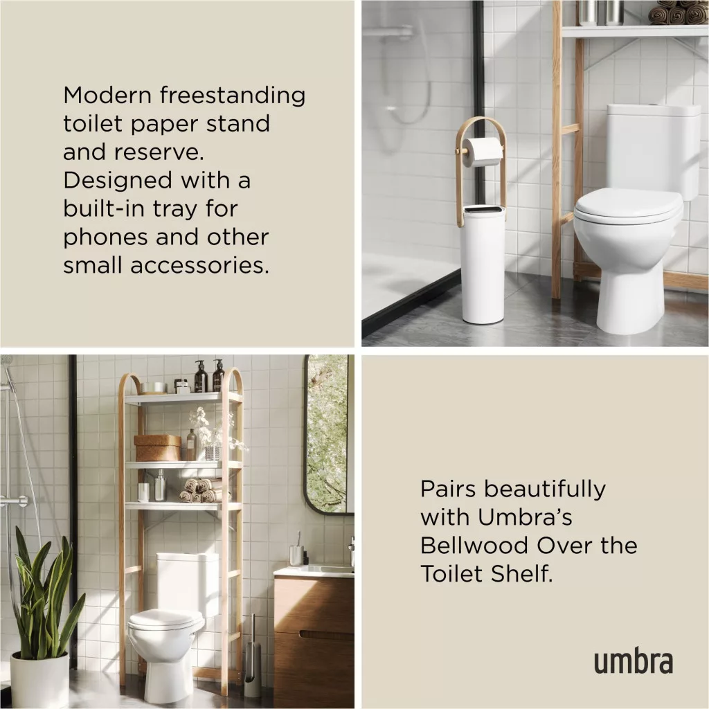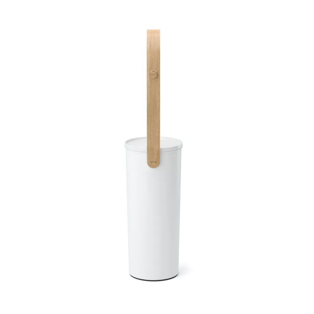 A termék a skandináv stílus jegyében készült, melyet a tiszta fehér és natúr fa kombinációja jellemez. A tartó alapját tartós polipropilén anyag adja, amely ellenáll a mindennapi használatnak és a nedvességnek. A természetes fa elemek melegséget sugároznak, így harmóniában vannak a modern fürdőszobai környezettel. A kompakt kialakítás lehetővé teszi, hogy szűk helyeken is kényelmesen elhelyezd, miközben a beépített tartó három normál vagy jumbo méretű wc papír gurigát képes tárolni. A beépített tálca pedig extra funkciót kínál, ahol kisebb használati tárgyakat tarthatsz mindig kéznél.