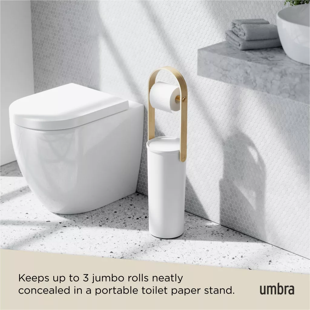 Skandináv stílusú földön álló wc papír tartó fürdőszobába