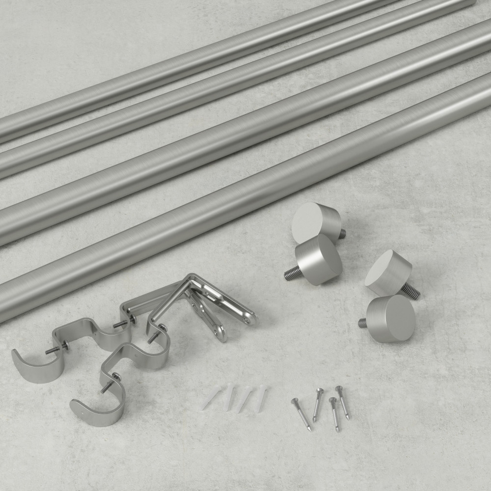 Hogyan lehet beszerelni a karnist? A csomag tartalmazza a falra szerelhető konzolokat, csavarokat, tipliket, valamint egy részletes útmutatót, amely alapján könnyen és gyorsan felszerelhető.