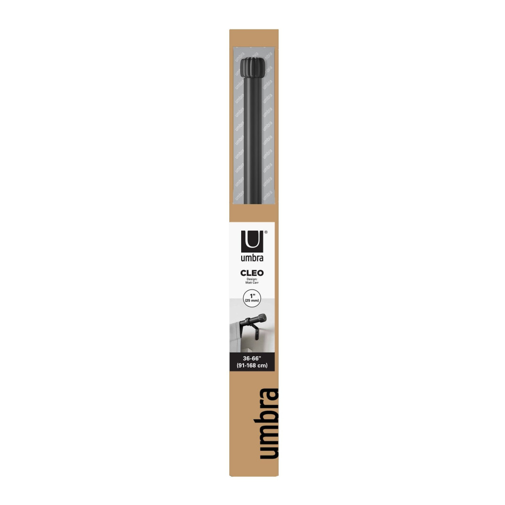 Ez az Umbra márkájú függönykarnis 1 colos (2,5 cm átmérőjű) acél rúddal rendelkezik, amely fekete matt felülettel van ellátva. Az állítható mechanizmus segítségével 91 és 168 cm között variálható a hosszúság, így egyaránt alkalmas kisebb és nagyobb ablakokhoz. A finom textúrájú, redőzött végzárók nemcsak esztétikusak, hanem stabilan tartják a függönyt. A karnis akár 10 kg súlyú függönyöket is elbír, így többféle anyagú és stílusú függönyhöz használható. A termék környezetbarát bevonatot kapott, amely csökkenti a környezeti terhelést a gyártás során. A csomagban található középső tartóelemet a maximális teherbírás eléréséhez ajánlott felszerelni.