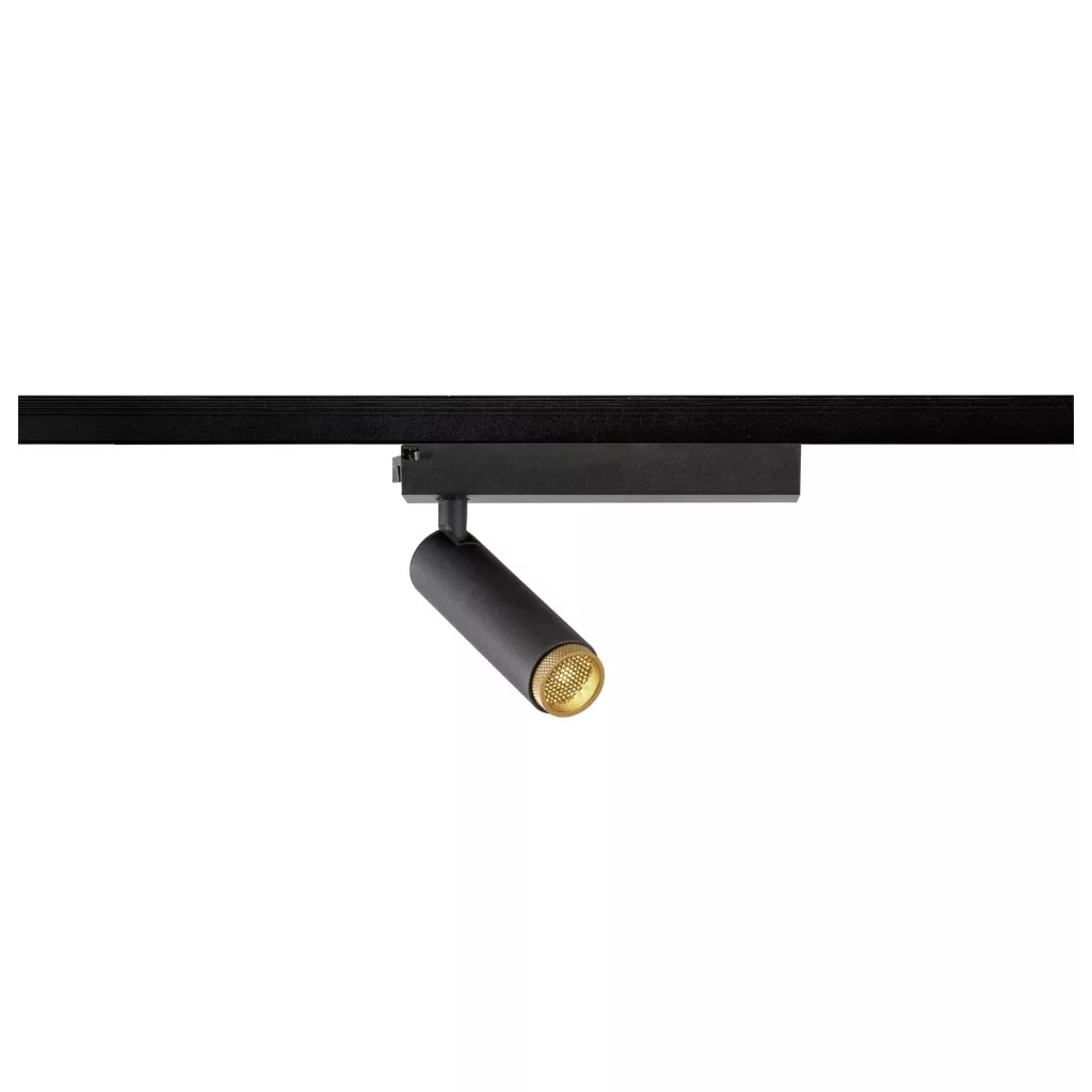 GRIP! S fekete-arany dim-to-warm hengeres dimmelhető állítható LED spot lámpa 1 fázisú sínhez
