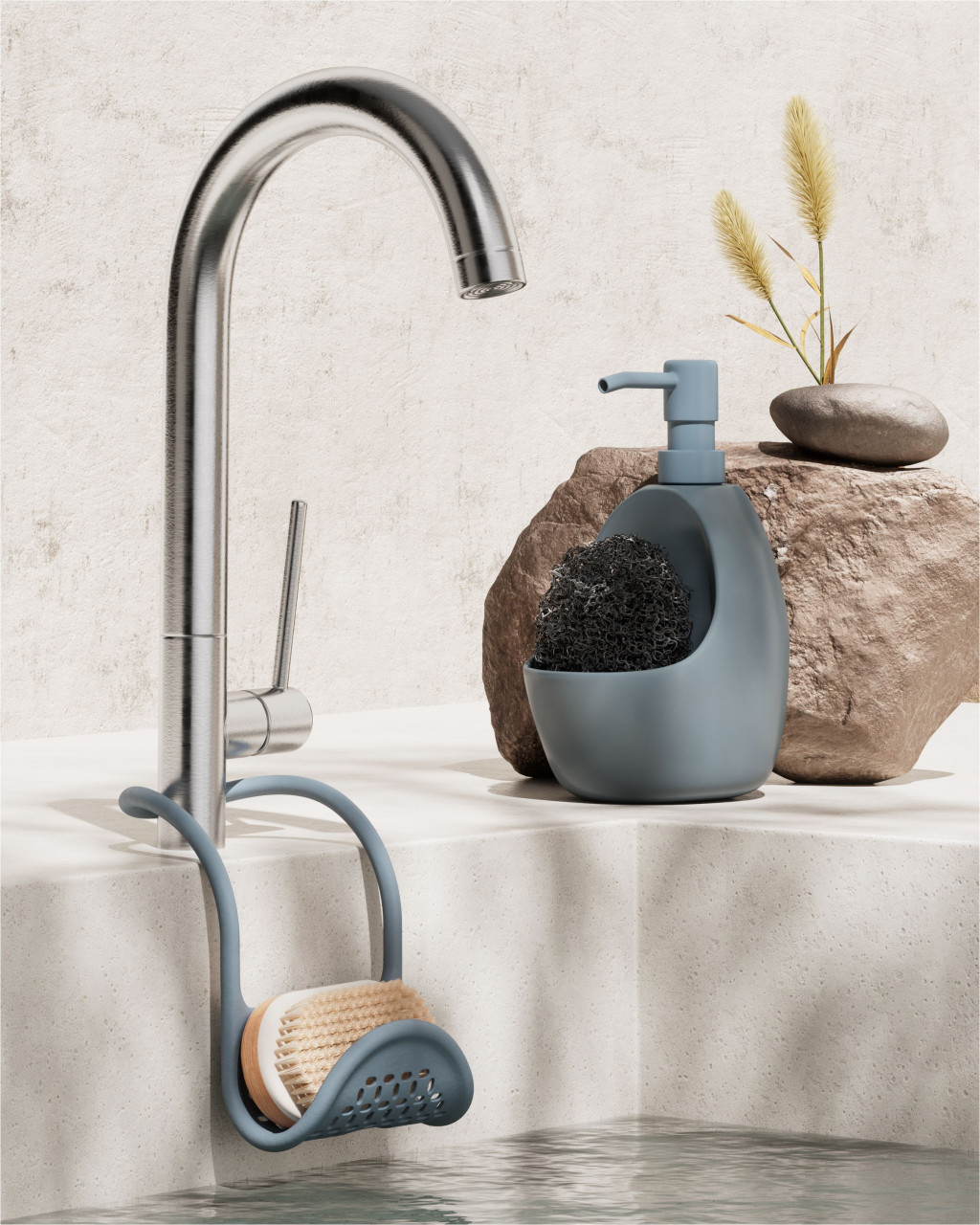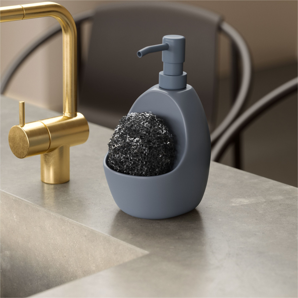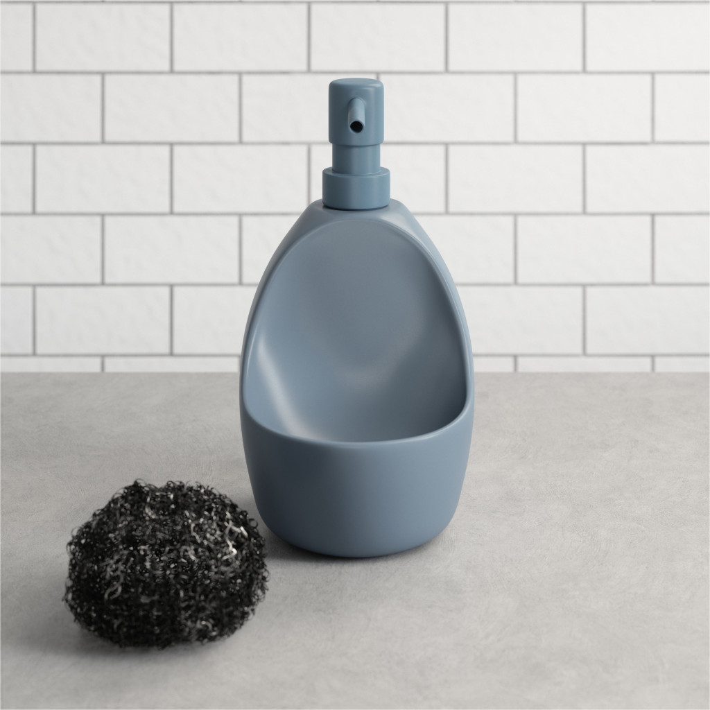 Rendezetlen mosogató környezetet könnyű kezelni egy multifunkciós adagolóval, amely egyben helyet is spórol a konyhában. A szürkéskék színű kerámia mosogatószer adagoló szivacstartóval hatékonyan segít a tisztaság megőrzésében és a munkaterület rendezésében.