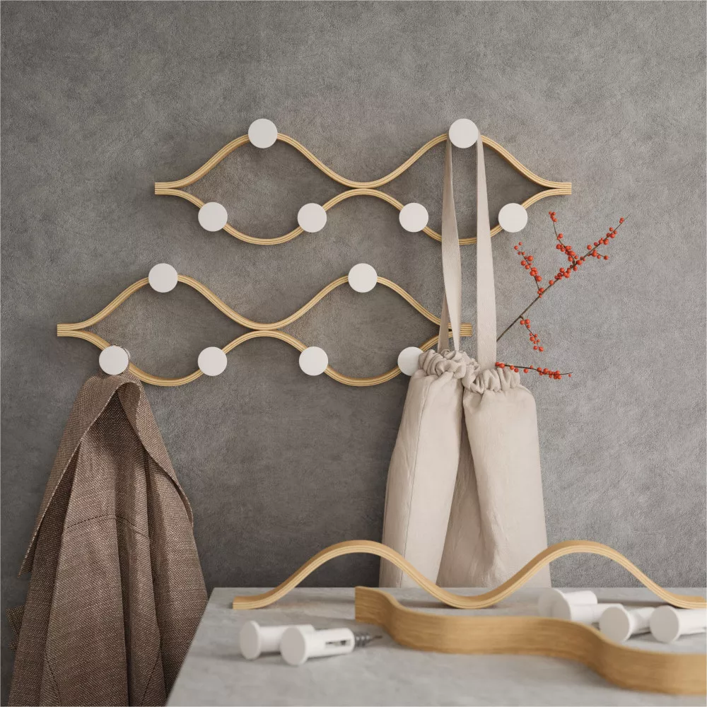 - Modern design: íves, hajlított fa forma, amely bármilyen beltéri stílushoz illeszkedik.