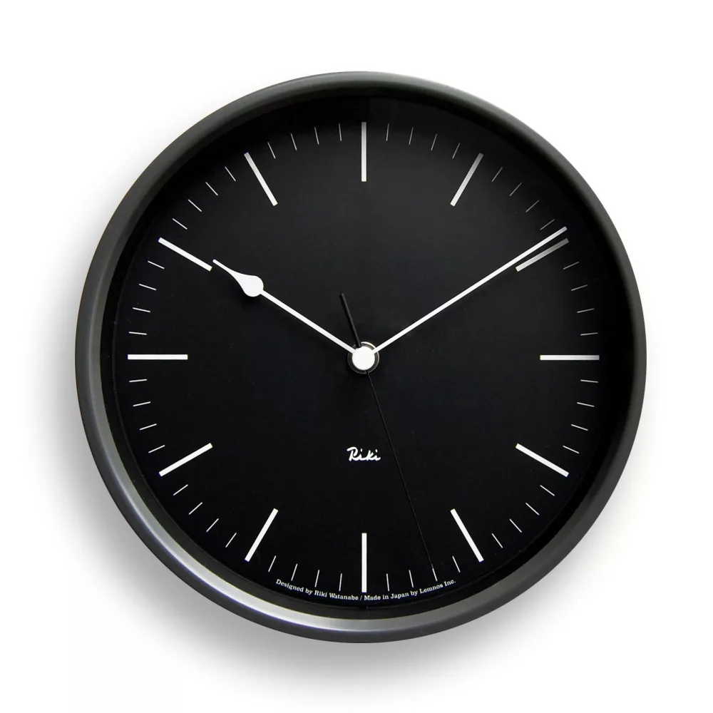 Lemnos RIKI STEEL SEIKO fekete 20 cm átmérőjű hangtalab japán fali óra | WR08-24 BK