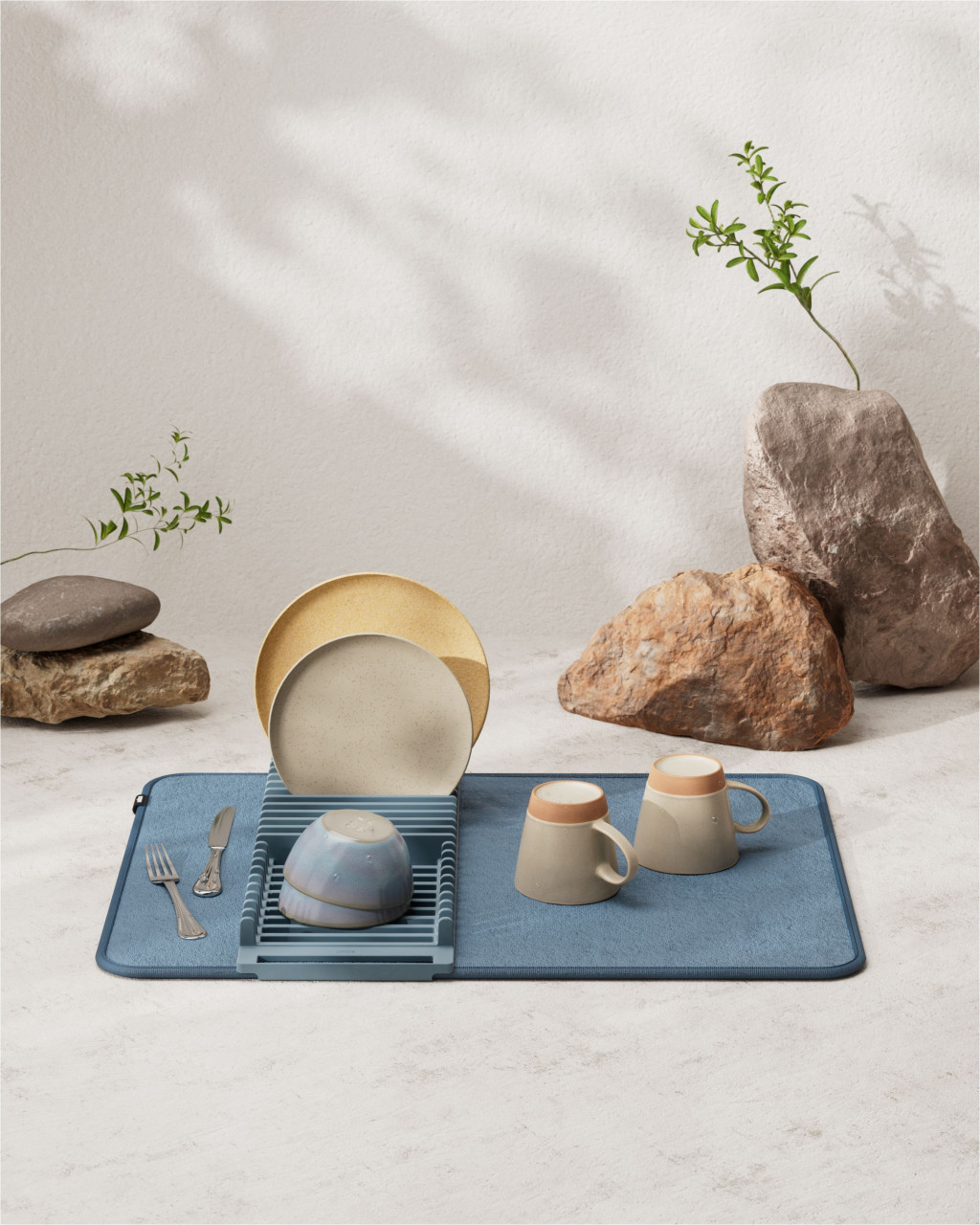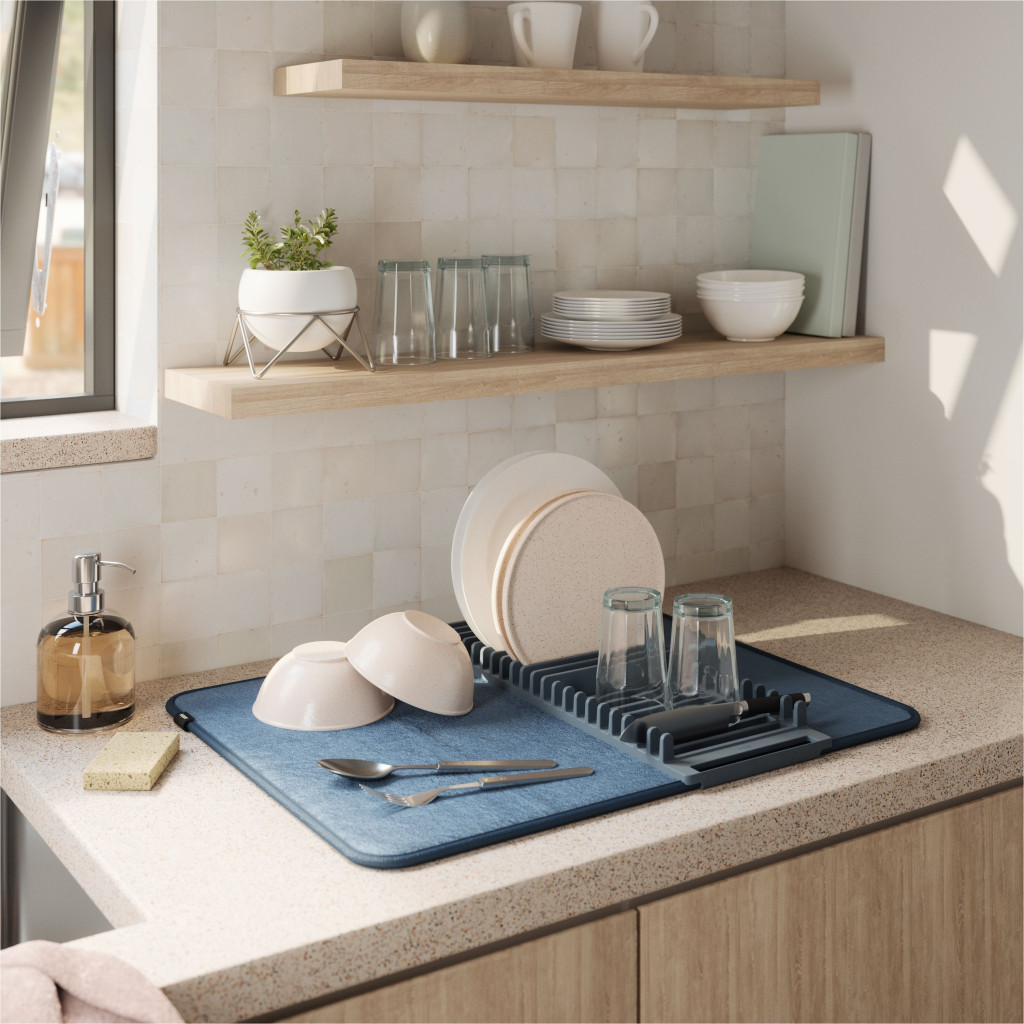 Hatékony edényszárító matrac szürkéskék színben konyhai rend és praktikum érdekében