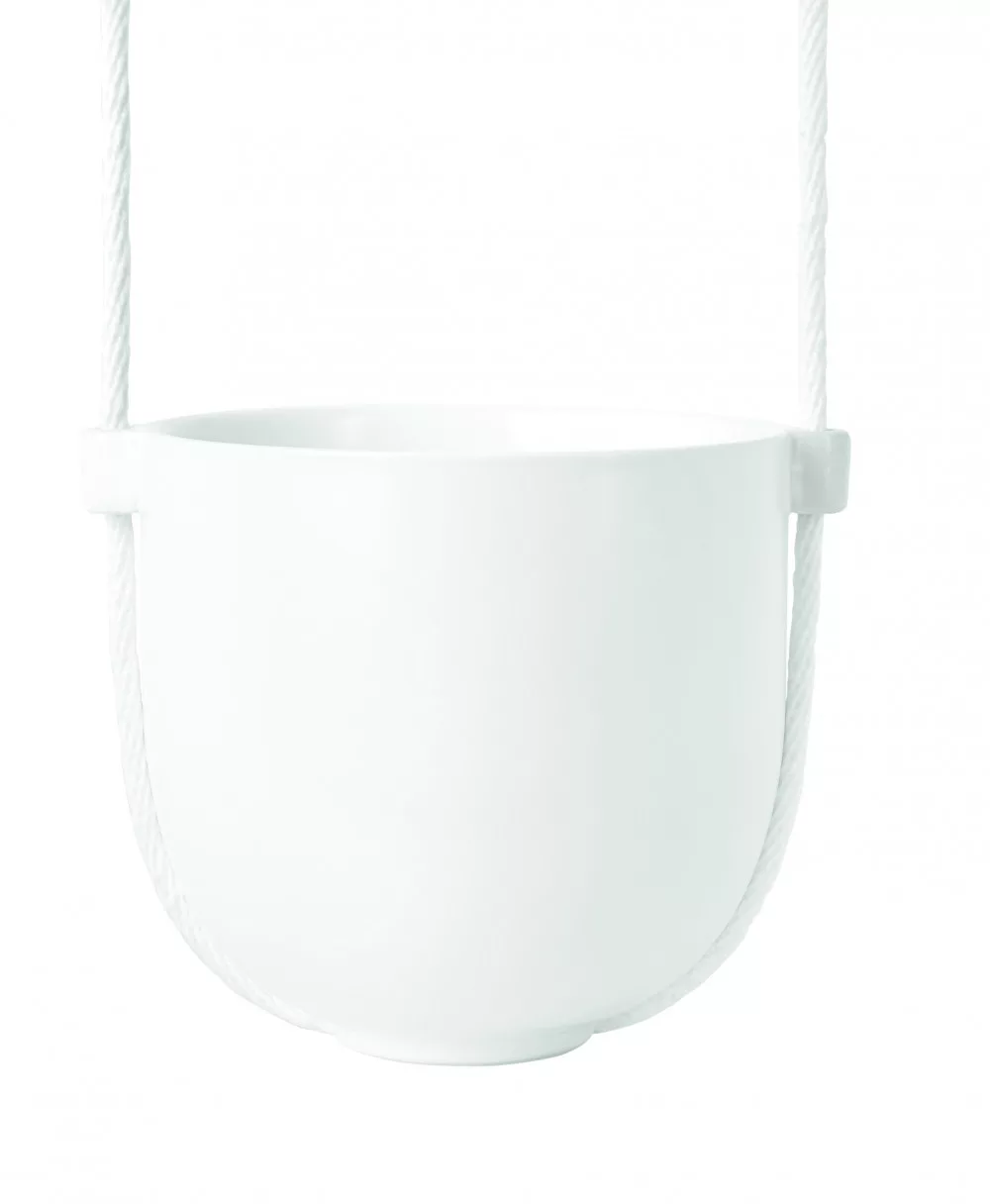 A kaspó kiváló minőségű kerámiából készült, mely matt fehér felületével modern megjelenést kölcsönöz. Kevésbé törékeny, mint az átlagos porcelán, így ideális a mindennapi használatra. A kaspó gömbölyded formája biztosítja a növények stabil elhelyezését, miközben vizuálisan könnyed, légies hatást kelt. A mellékelt kötél és színes akasztók segítségével a kaspó falra vagy mennyezetre is felszerelhető, így rugalmasan alakíthatod a tér hangulatát.