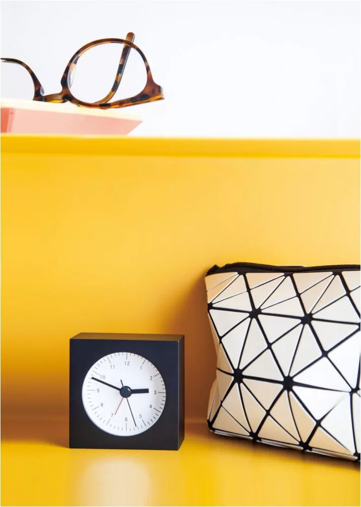 CITY POP fekete-fehér színű bükkfa-üveg anyagból készült 7x7 cm-es ébresztő óra | LEMNOS YK19-18-WH