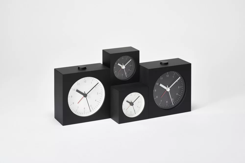 CITY POP fekete-fehér 7x7 cm-es bükkfa ébresztő óra