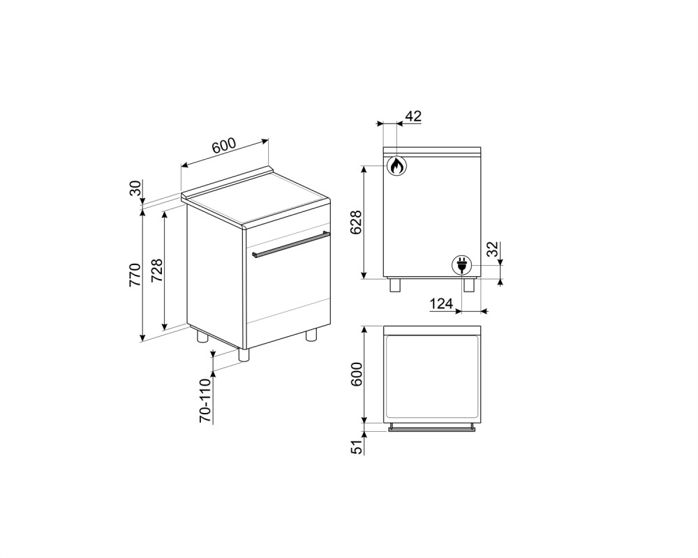 CLASSICA GP61X9 inox 60 cm széles professzionális szabadonálló gáztűzhely