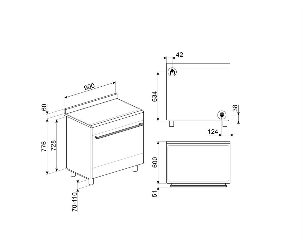 SMEG Classica SX91GM inox professzionális szabadonálló gáztűzhely
