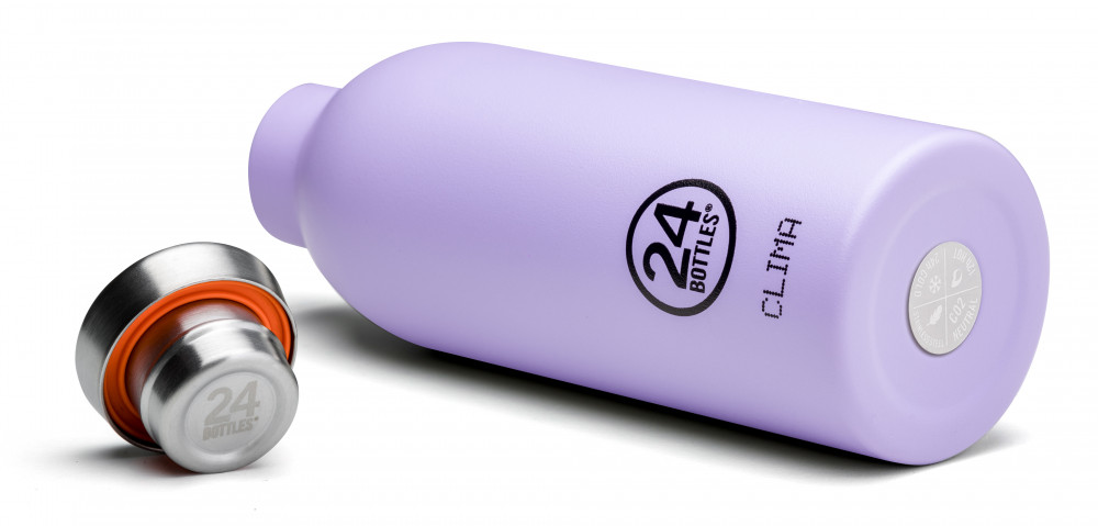 CLIMA levendula lila színű 18/8 rozsdamentes acél - műanyag - gumi anyagból készült 500ml-es hőtartó kulacs | 24BOTTLES 8051513921858