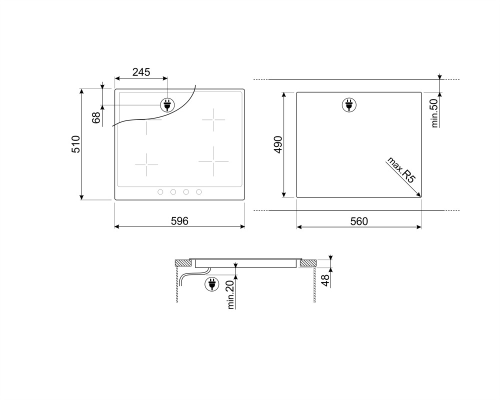 COLONIALE P864AO antracit 60 cm széles beépíthető kerámia főzőlap