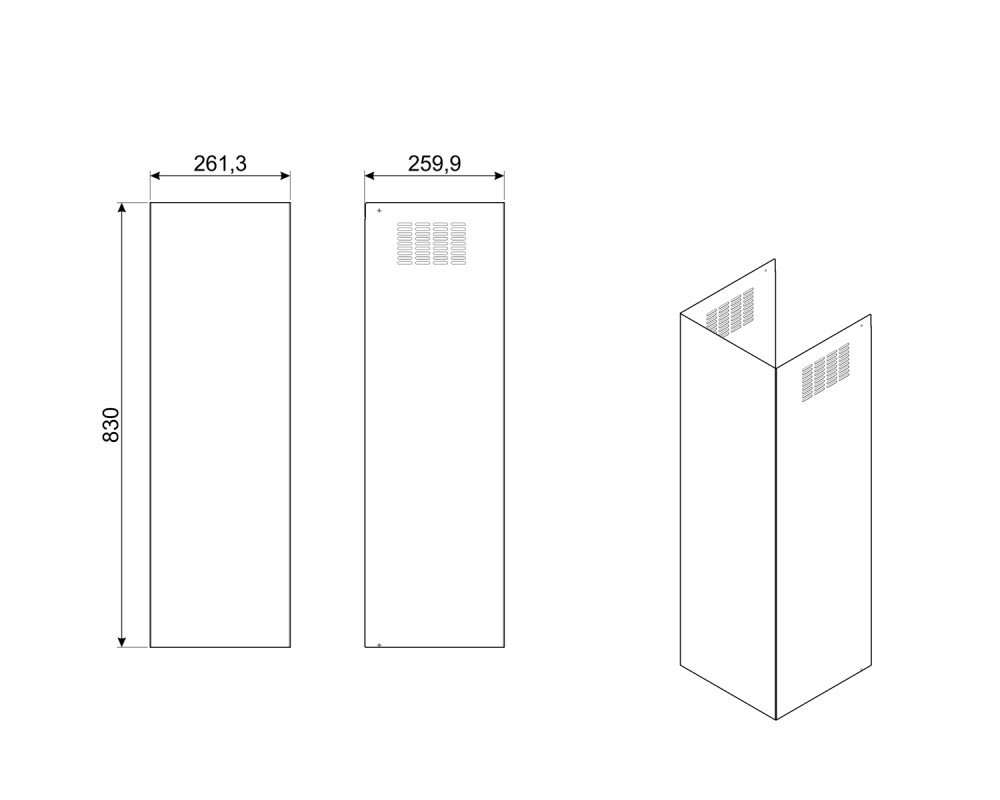 KITCEKBT inox 26x26x83cm-es páraelszívó kürtőhosszabbító KBT és KBCT modellekhez