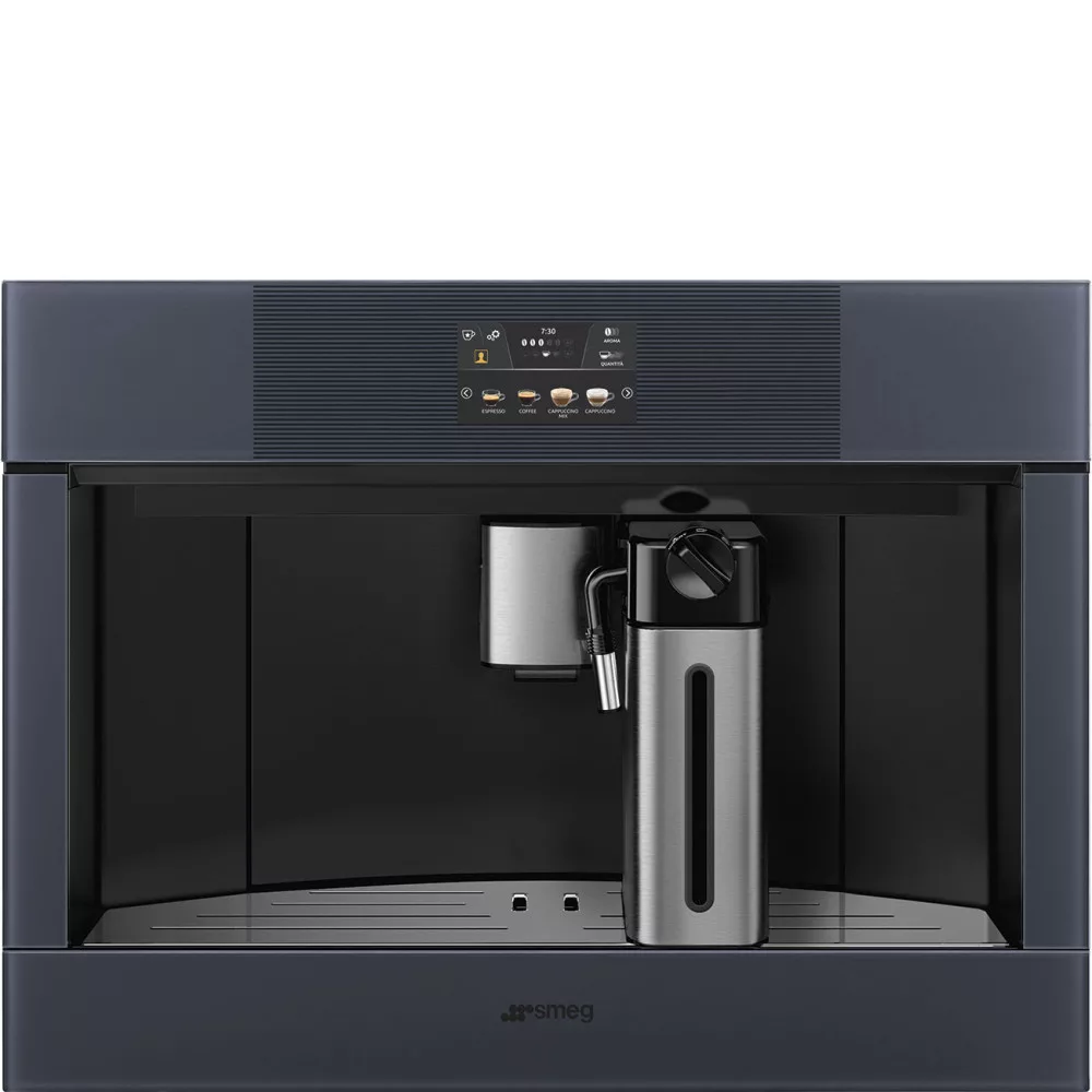 Linea design, 60x45 cm, színes TFT kijelző, érintőszenzoros vezérlés, szemeskávéhoz és őröltkávéhoz, 5 fokozatú kávéerősség, 3 fokozatú kávéhőmérséklet, 5 beállítható kávéhosszúság, automata cappuccino készítő külön tejtartállyal, neptune szürke üveg