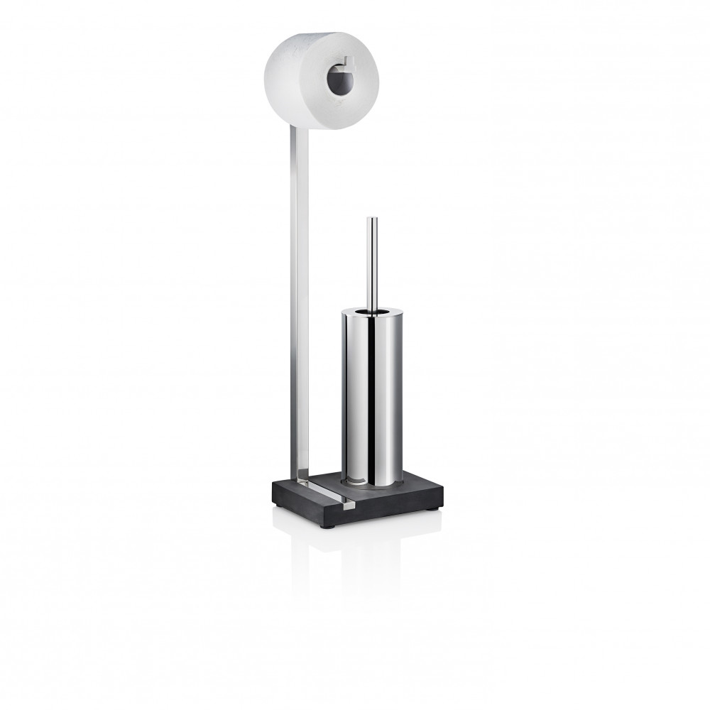 MENOTO edelstahl poliert színű polírozott rozsdamentes acél-polystone műanyag anyagból készült földön álló wc papír és wc kefe tartó állvány | BLOMUS 68820