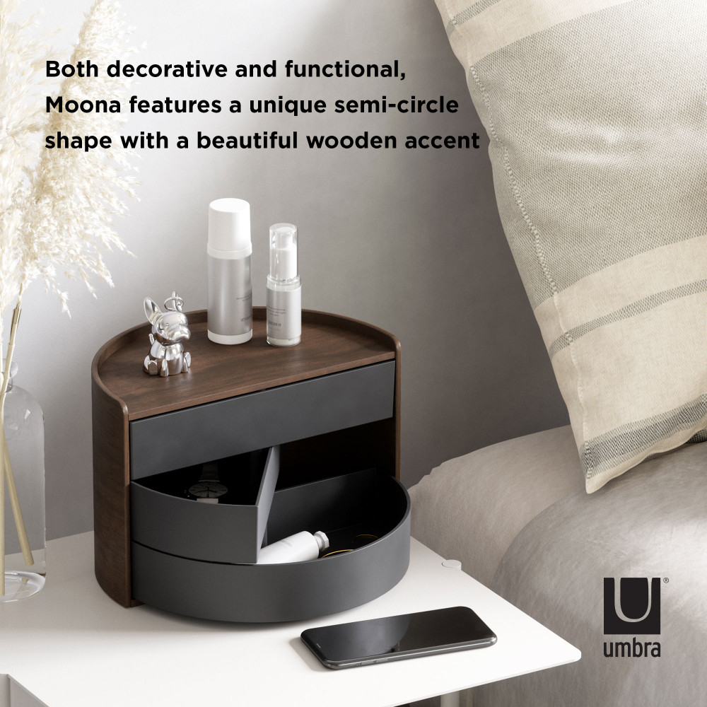 - Használd a felső tálcát parfümök, apró dekorációk vagy napi használatú kiegészítők elhelyezésére.