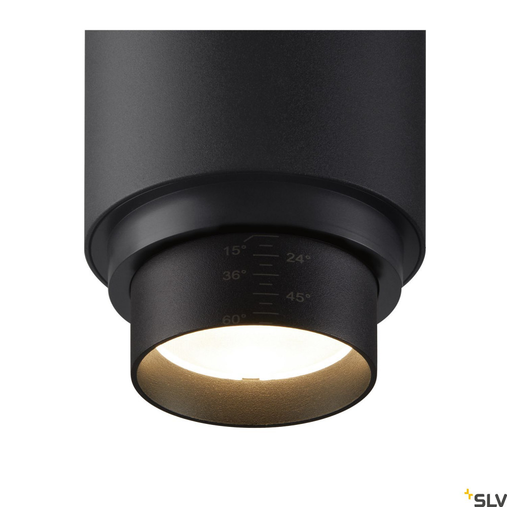NUMINOS ZOOM M PHASE fekete színű alumínium, polikarbonát, PC anyagból készült 8.5cm 3000K 15-60° 20W állítható sugárzási szögű LED spot lámpa 3 fázisú sínhez | SLV 1006110