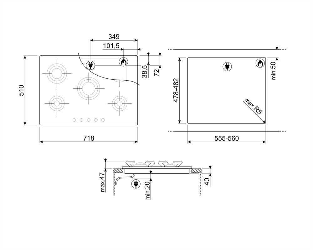 SMEG Piano P705ES inox beépíthető gáz főzőlap