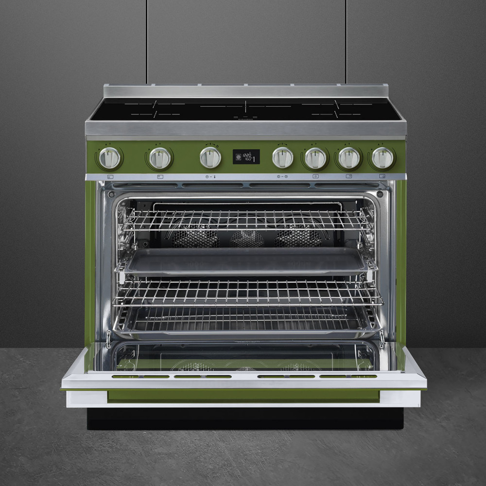SMEG Portofino CPF9IPOG oliva zöld professzionális szabadonálló indukciós tűzhely