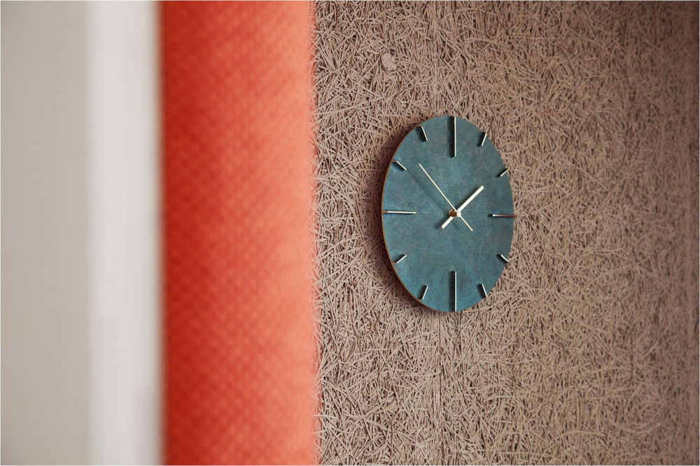 QUAINT türkizkék színű antikolt sárgaréz anyagból készült 25 cm átmérőjű fali óra | LEMNOS AZ15-06-GN