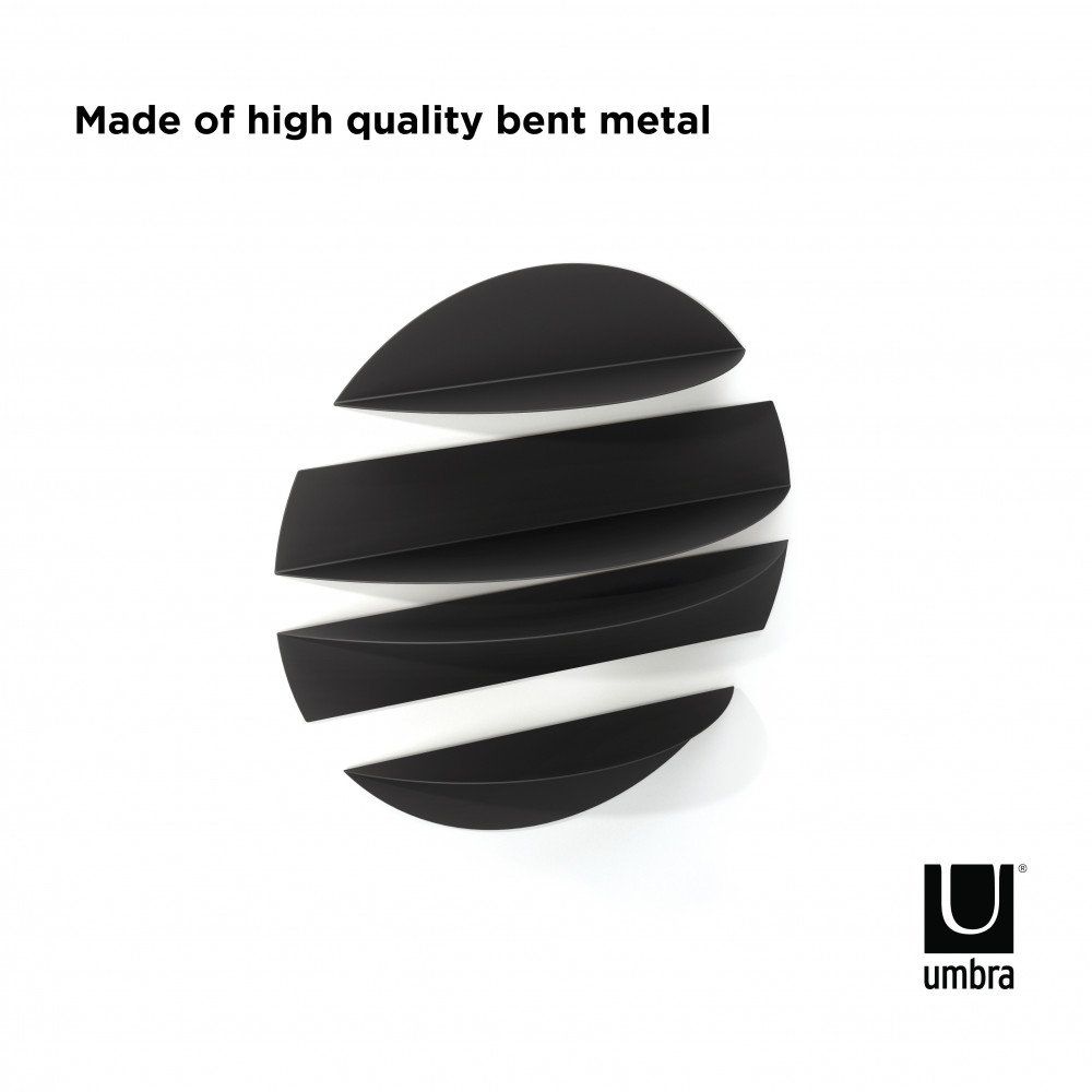 A polcok acélból készültek, amelyet ívelt formára hajlítottak, így nemcsak masszívak, hanem esztétikusak is. A fekete színű felület modern hangulatot kölcsönöz a helyiségnek. A polcok felszerelhetők úgy, hogy a polc felülete felfelé vagy lefelé nézzen, ezzel is növelve a variálhatóságot. Méreteik 76 cm átmérővel és 19 cm mélységgel ideálisak könyvek, gyertyák, képkeretek vagy egyéb dekorációs elemek tárolására vagy kiállítására.