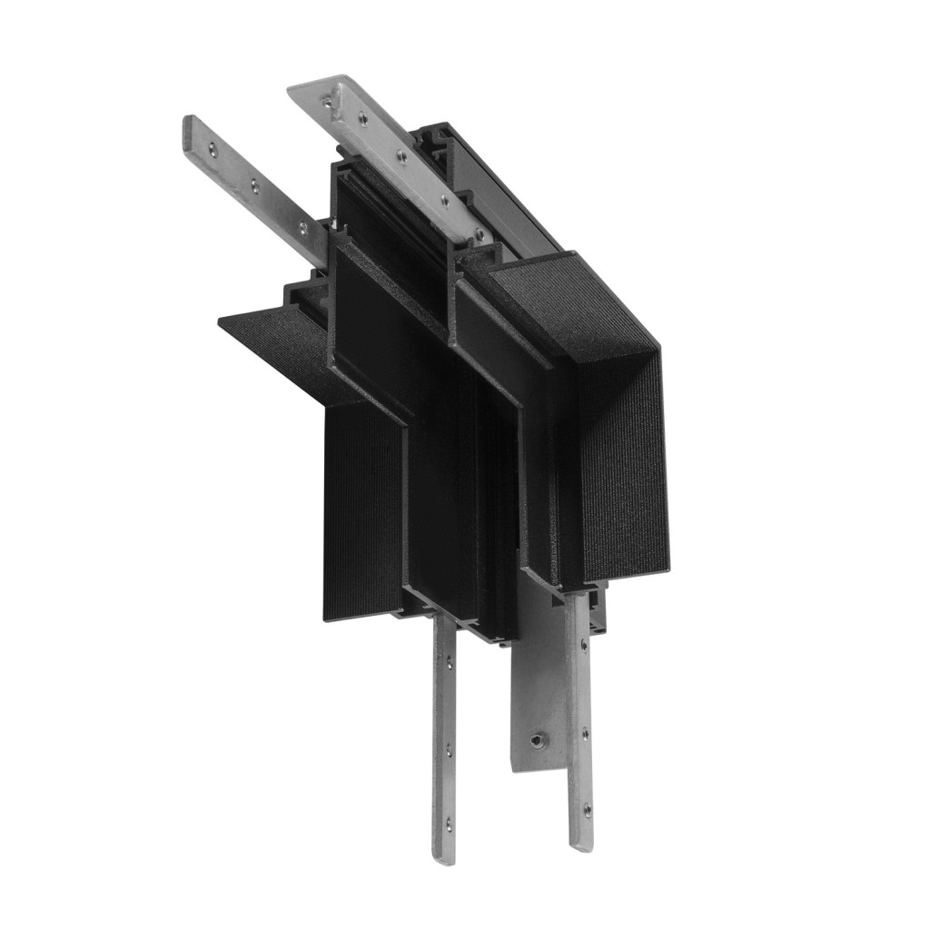 48V SYSTEM fekete mechanikai sarok csatlakozó flexibilis toldó és betápláló elemhez mennyezet és fal átvezetésénél 48V-os alacsony feszültségű magasított vagy süllyesztett sínhez