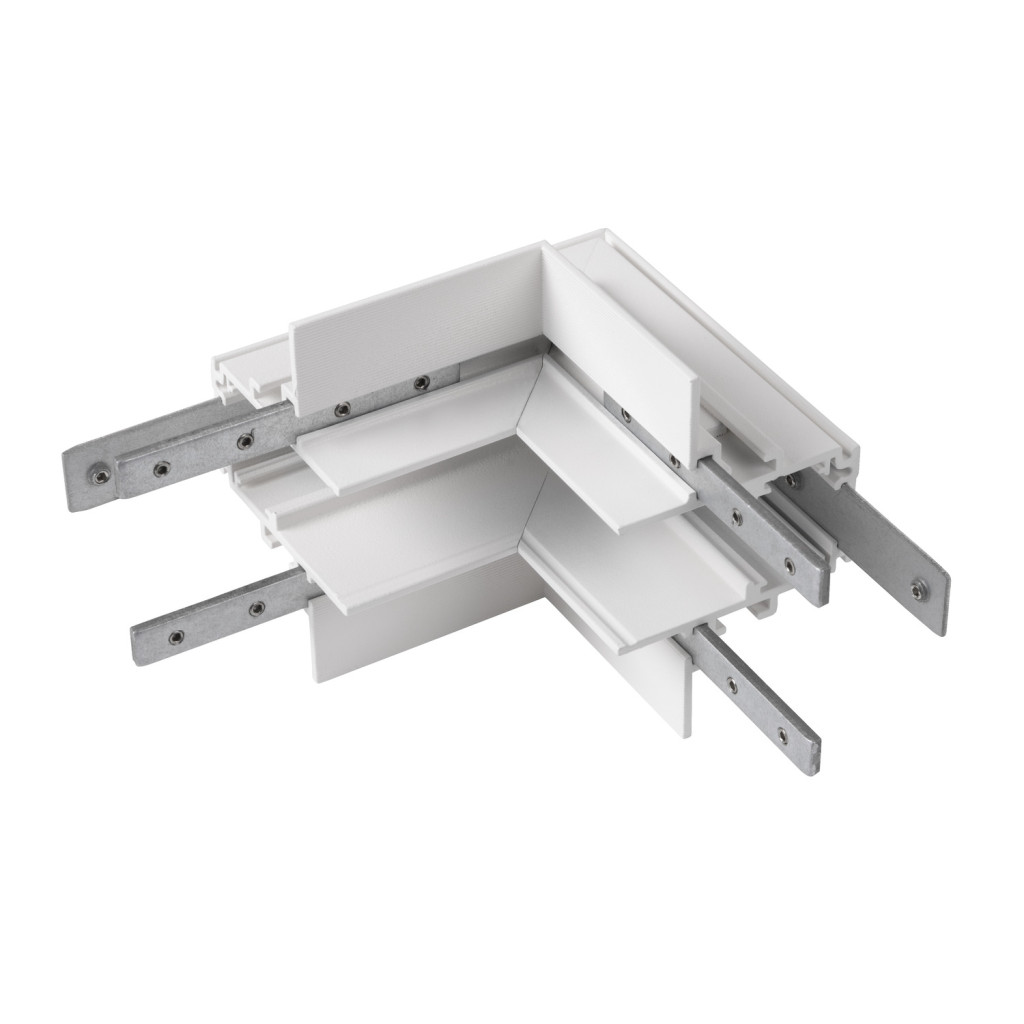 48V SYSTEM fehér mechanikai sarok csatlakozó flexibilis toldó és betápláló elemhez mennyezet és fal átvezetésénél 48V-os alacsony feszültségű magasított vagy süllyesztett sínhez