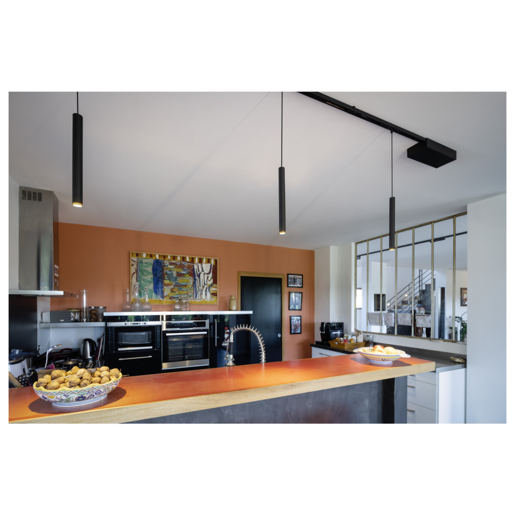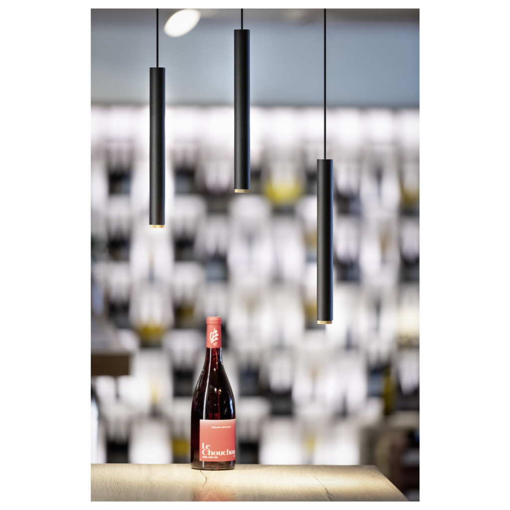 GRIP! S 48V fekete-arany 2700K DALI hengeres dimmelhető függesztett LED lámpa 48V alacsony feszültségű sínhez