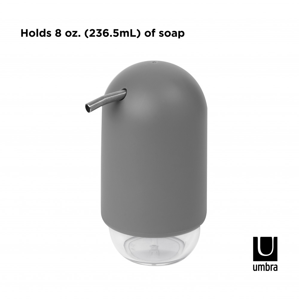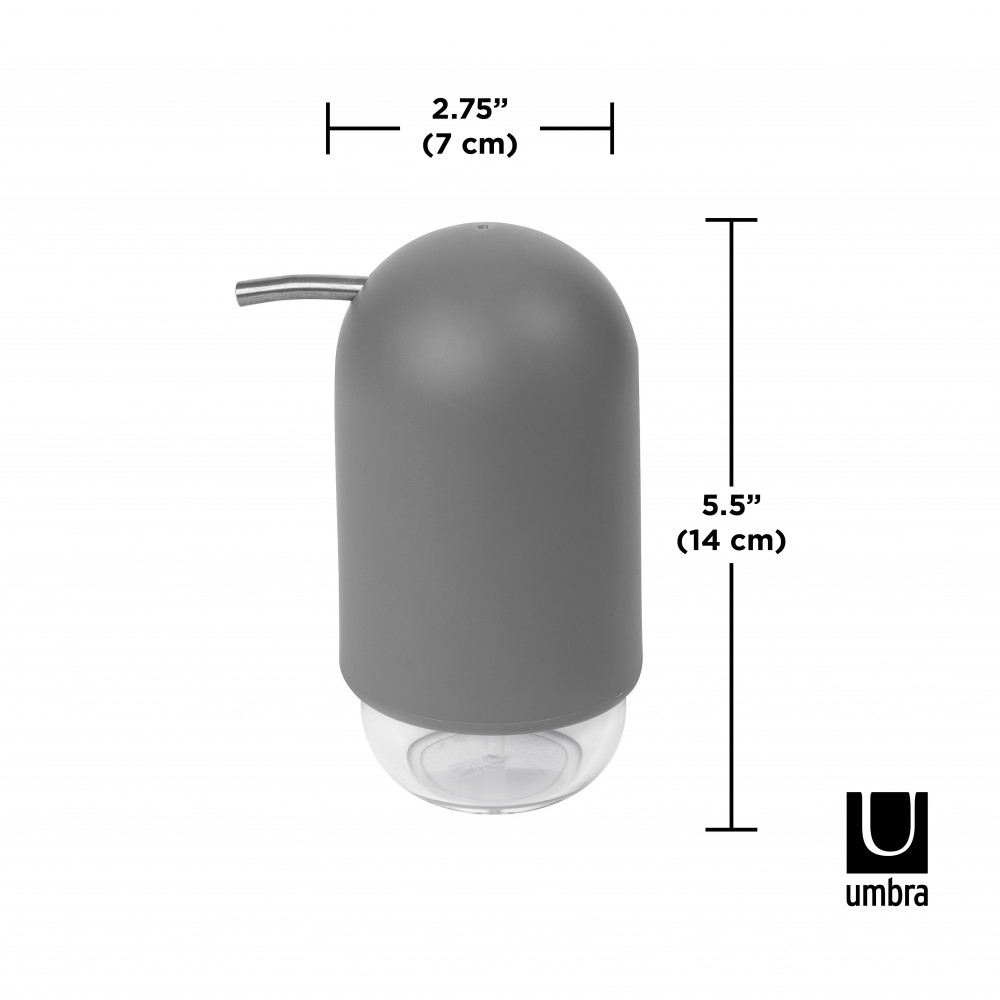 A 236 ml űrtartalmú adagoló polipropilén, akril és termoplasztikus gumi kombinációjából készült, amely biztosítja a hosszú élettartamot és a kellemes tapintást. A matt, puha felület elegáns, modern megjelenést kölcsönöz, amely jól illeszkedik bármilyen fürdőszobai vagy irodai környezethez. A pumpa ergonomikus kialakítása kényelmes kézre simul, így könnyen adagolhatod a folyékony szappant vagy kézfertőtlenítőt. Az alsó, átlátszó tartály lehetővé teszi a tartalom folyamatos nyomon követését, hogy soha ne fogyjon el váratlanul a szappan.