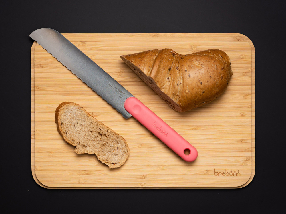 TRILOGY 3IN1 természetes fa-korall-lila színű csúszásmentes bambusz - szilikon - hőálló műanyag anyagból készült 34x24 cm-es vágódeszka edényalátét edénycsepegtető | TREBONN 1120108