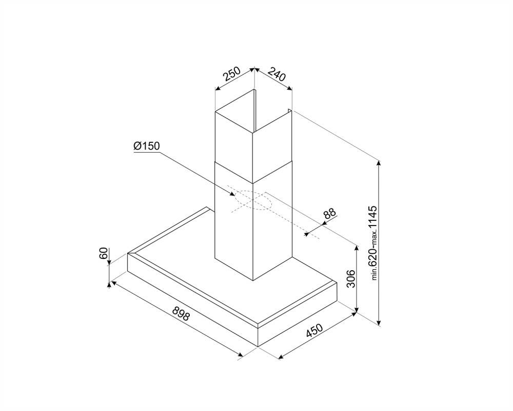 UNIVERSALE KATE900EX inox 90 cm széles fali kürtős páraelszívó