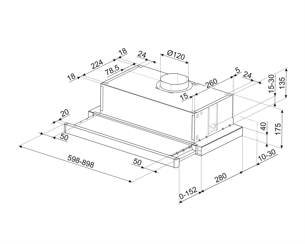 UNIVERSALE KSET91E2 inox 90 cm széles beépíthető teleszkópos kihúzható páraelszívó