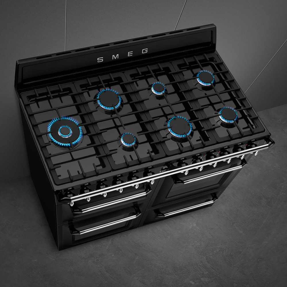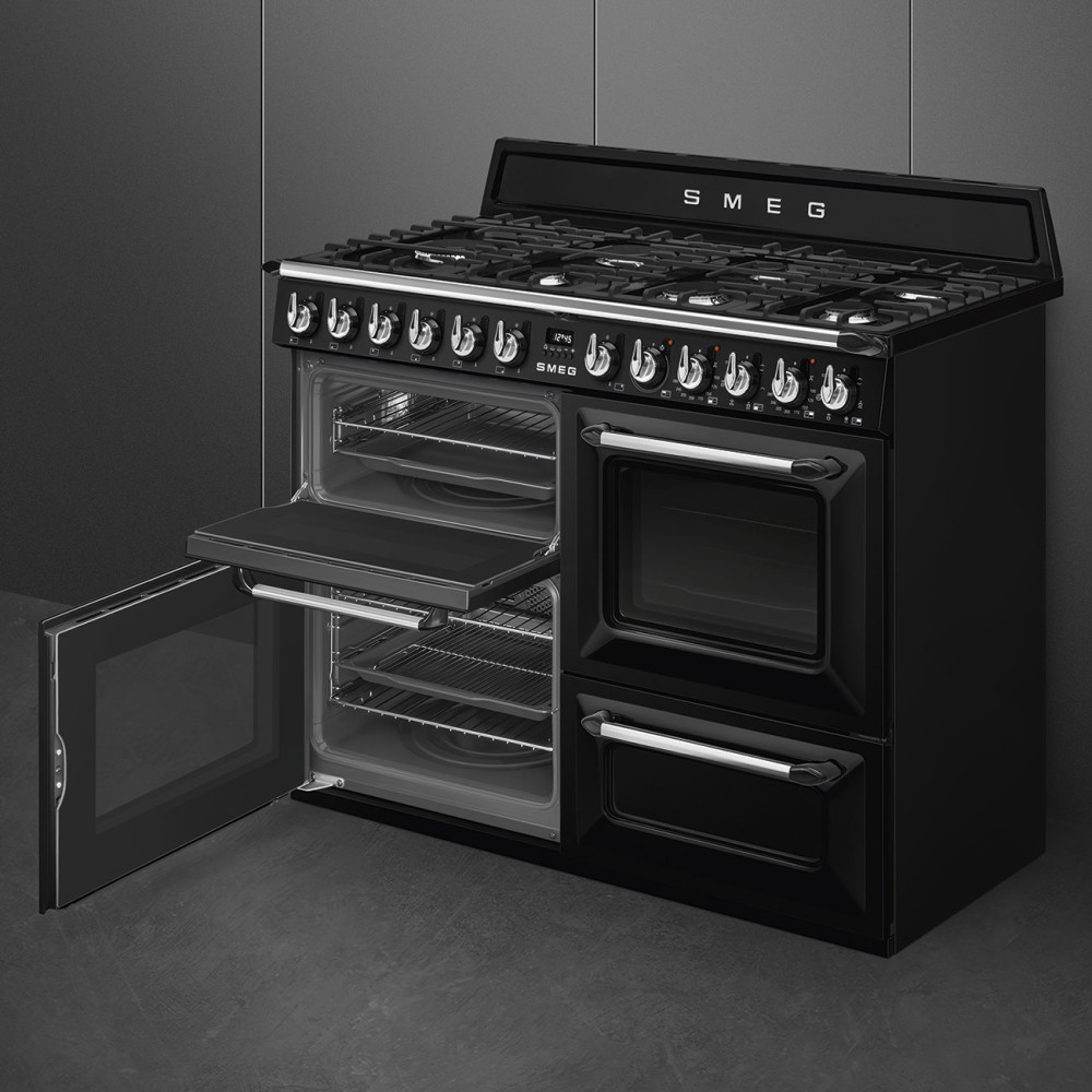 SMEG Victoria TR4110BL1 Fekete klasszikus professzionális szabadonálló gáztűzhely