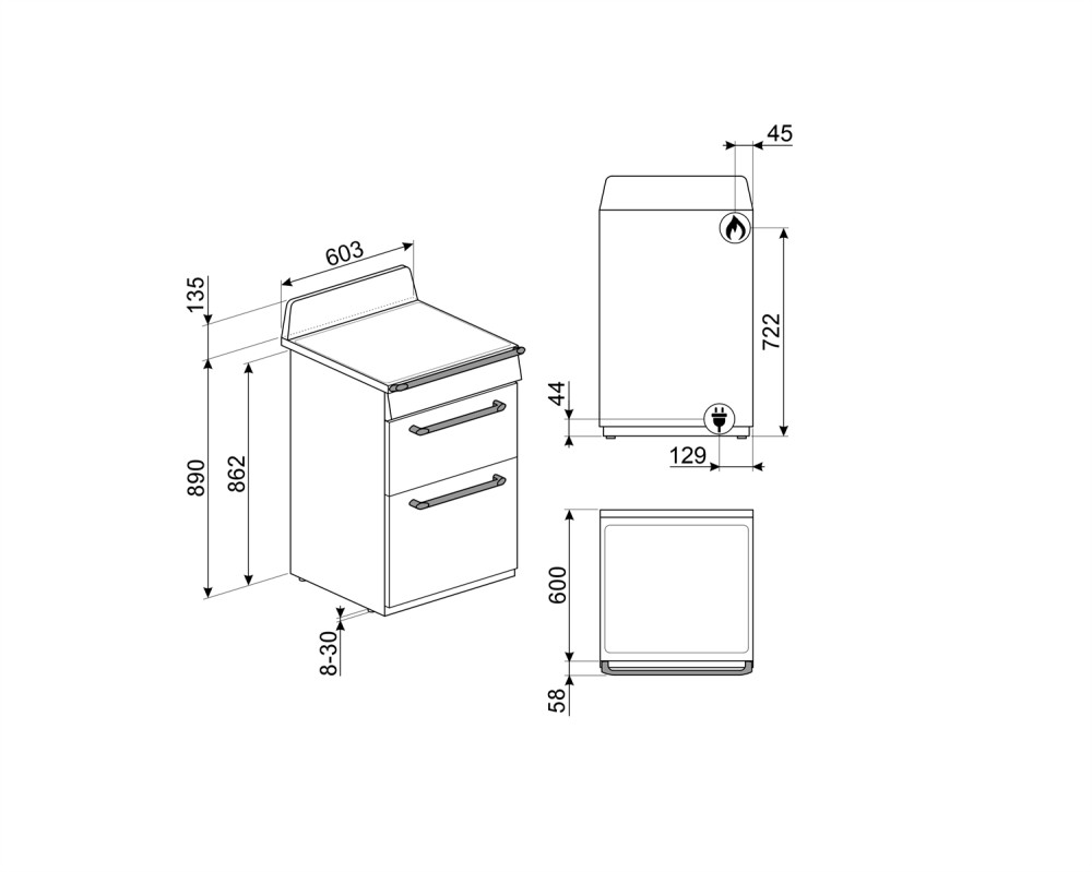 SMEG Victoria TR62BL Fekete klasszikus professzionális szabadonálló gáztűzhely